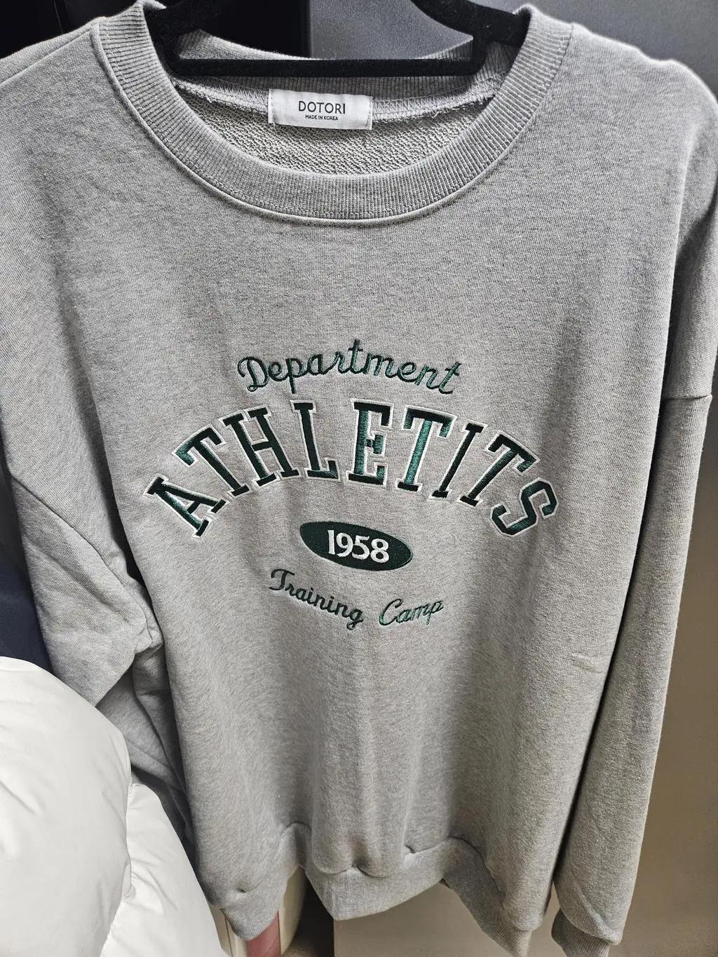 • 넉넉한 사이즈라 캐주얼 하게 자주 입을 거 같네요.회색 색상에 그린색으로 글씨가 있어 더 예쁘네요~