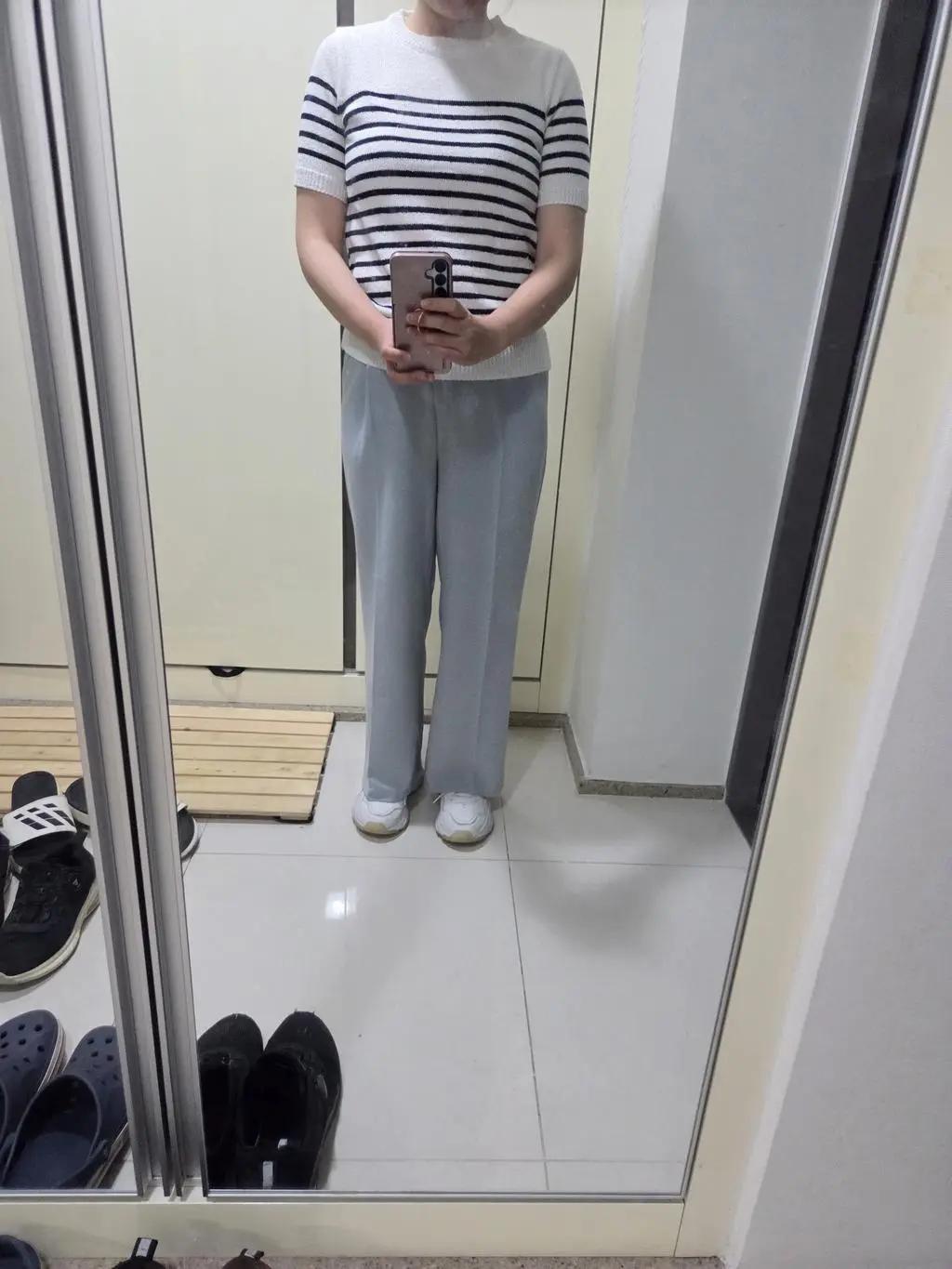 평소에 L사이즈를 입어요. 이바지는 크게 나왔다는 리뷰를 보고 M사이즈 구매! 역시 리뷰는 믿을만하네요!!허리가 크게 나왔고 신축성도 있어서 저한테도 충분히 들어가요.배가 나오는 건 어쩔수 없고ㅋ 배랑 엉덩이는 가리고 다녀야겠어요ㅎ 핏도 제가 원하던 핏이 나와서 만족해요!