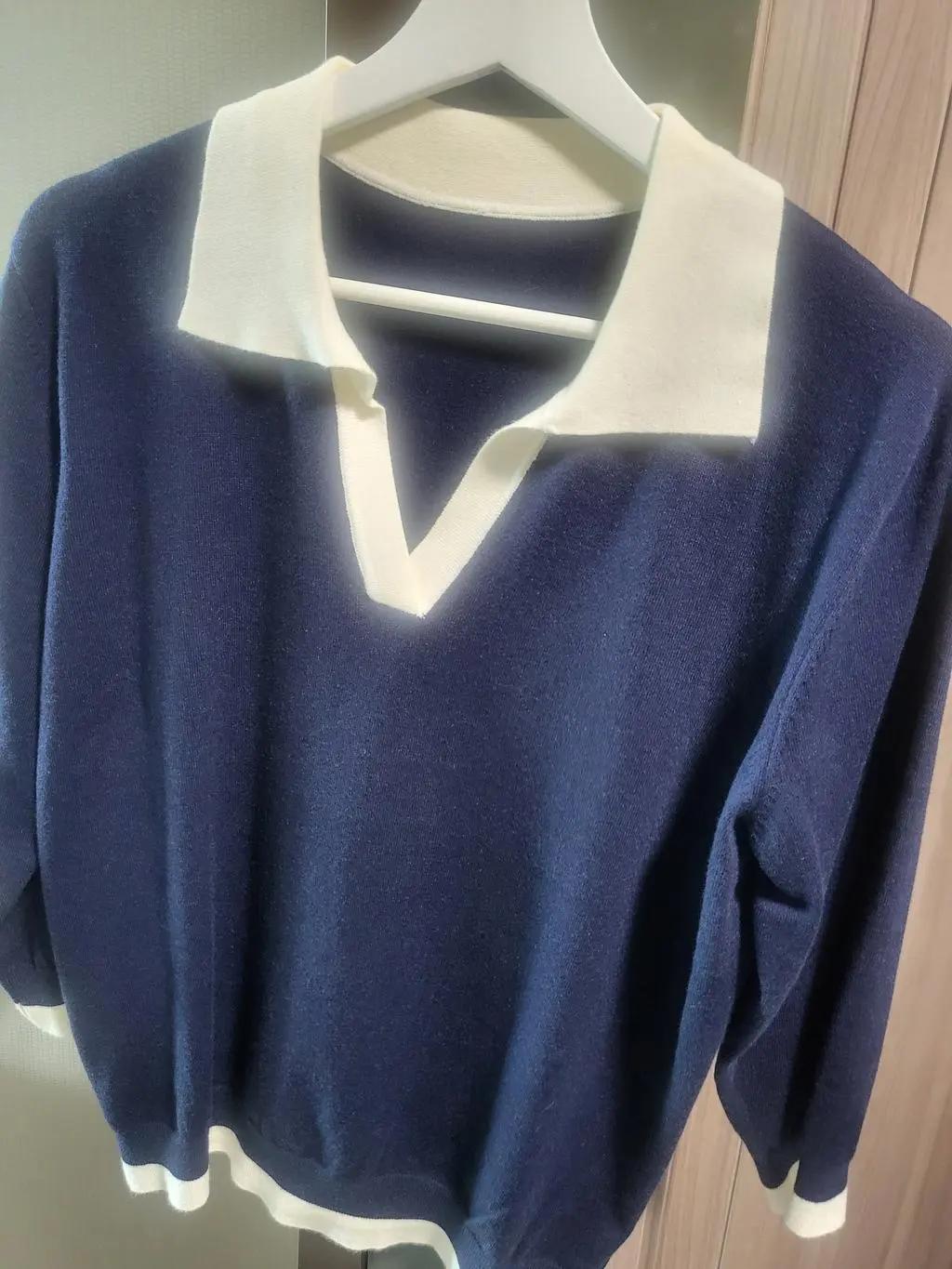 3/4 sleeve Collar Color matching Knitwear
