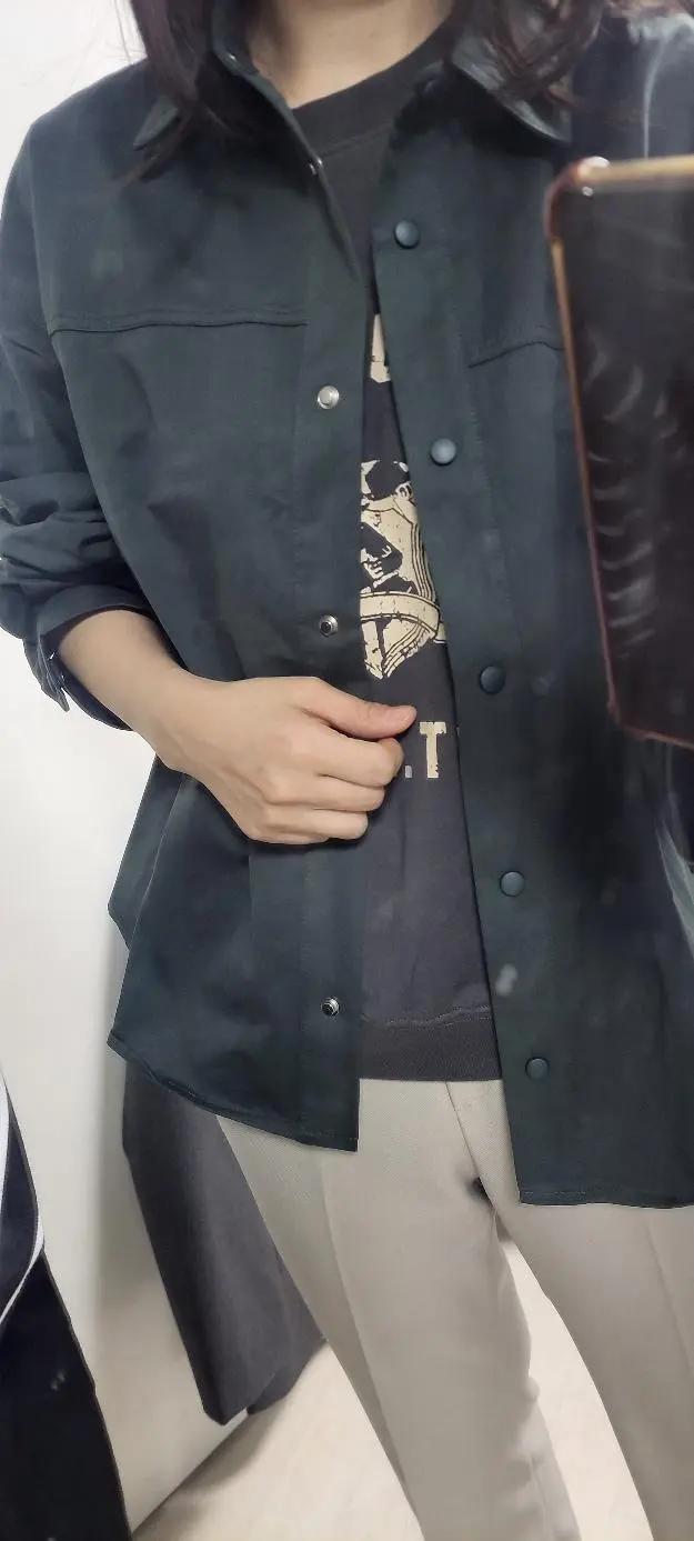 여러벌 구입하던 중 이 옷이 가장 긴가민가 했는데 걱정이 무색하게 색상도 예쁘고 가볍고 활용도도 좋아요. 물론 이 옷도 다른 자켓처럼 완전 오버핏입니다. 그런데 예쁘게 오버핏이예요