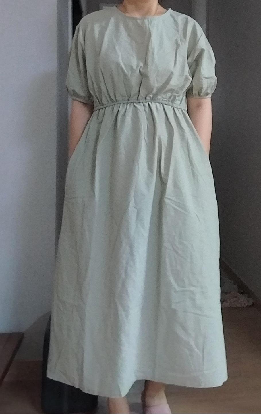 옷은 예쁜데 많이 날씬해야 예뻐요 요즘 처럼 몹시 뜨거운 날엔 좀 더운 것 같아요ᆢ 신축성이 없어서 입고 벗는것이 좀 불편 하지만 옷이 여유가 있어서 그나마 다행이에요ᆢ 길이는 길어서 좋아요 ᆢ 허리라인의 고무밴드가 약간 가슴라인쪽이라 하체가 길어보이는 효과가 있네요ᆢ 배부분도 잘 가려줘서 좋아요ᆢ배송도 하루만에 왔네요