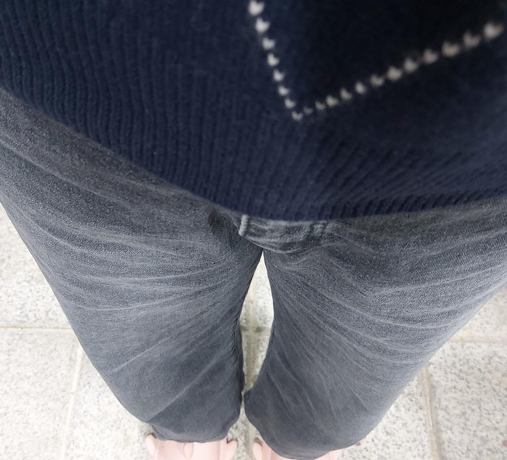 키도 작고 하비여서 이바지 저바지 반품도 많이하며 최대한 날씬해 보이는걸로 찾아 헤맸는데 요거 마음에 들어서 색별로 겟했어요. 바지 줄이지 않아도 되고 여유있고 통팬츠인데 뚱뚱해보이지 않고 좋아요