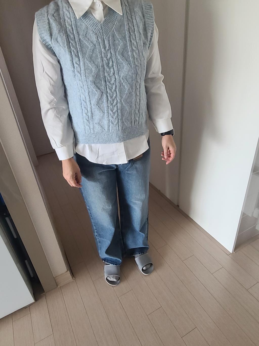 • 바지 허리가 골반보다 많이 위예요. 하이웨스트 느낌. 저만 그렇게 느끼는지 후기에 그런 말은 없더라구요. 허리 사이즈는 다른 옷보다 작아요.