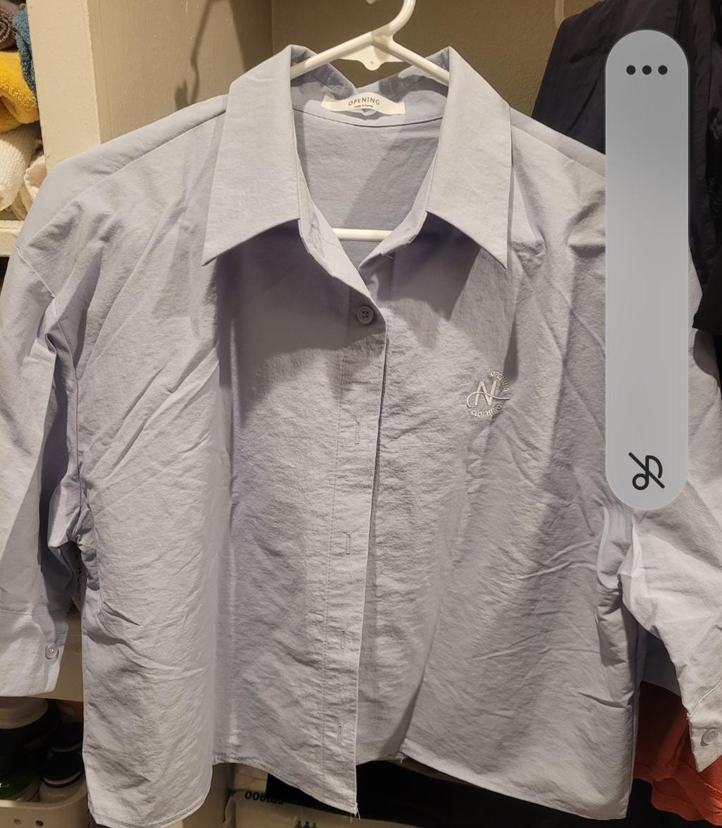 • This sky blue short sleeved shirt has a cute and pretty.