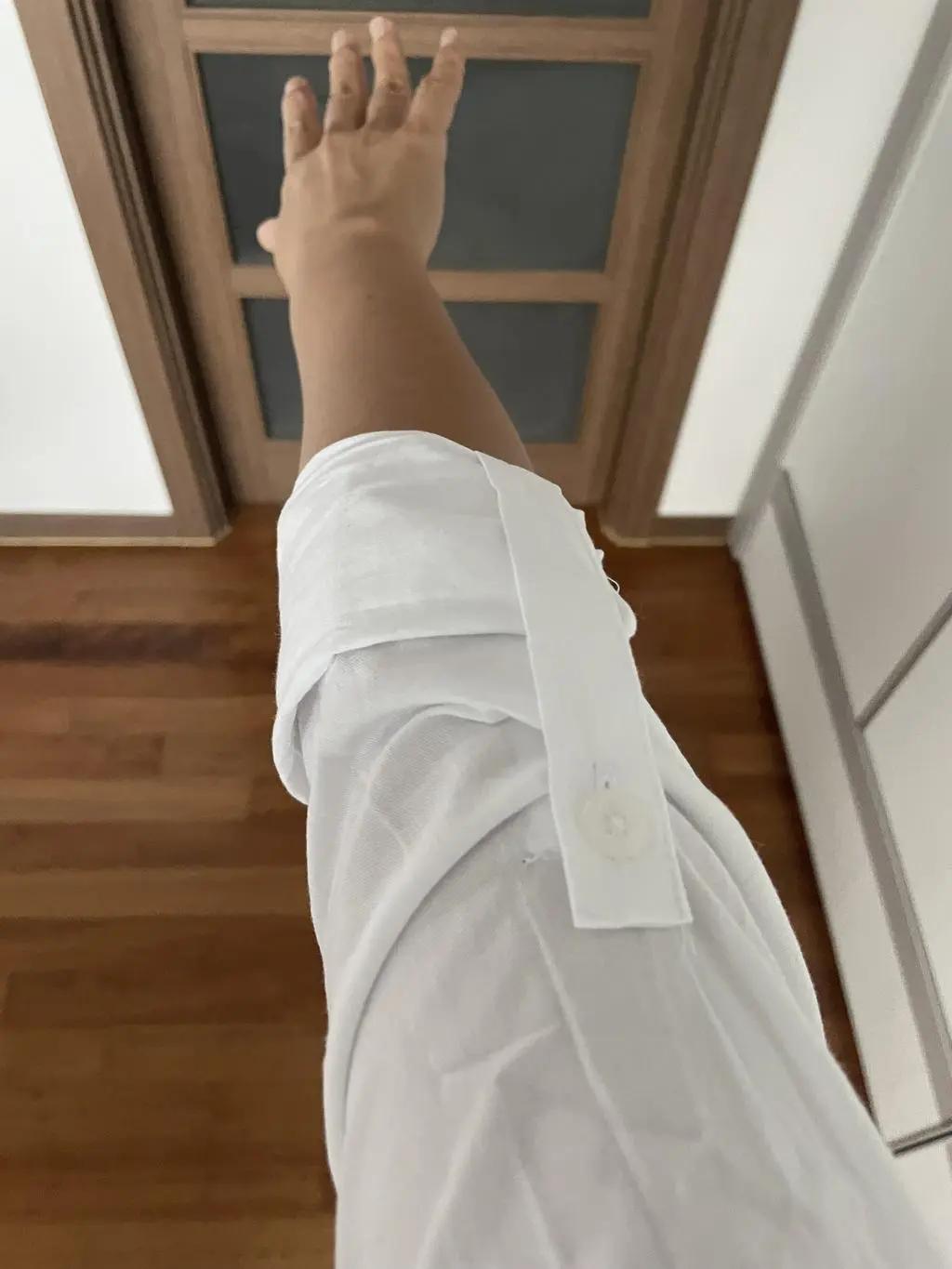 갑자기 흰셔츠가 필요해서 주문했는데 당일 발송해주셔서 여유있게 잘 받아서 잘 입었어요 소매통이 여유가 많지 않아 저는 롤업은 불편했고 단독으로 입는것보다는 조끼나 가디건 안에 입으면 더 예쁘겠어요