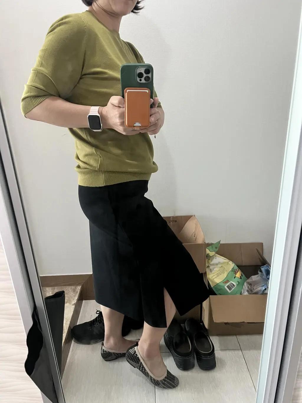 • 저한테는 조금 타이트 한 느낌인데 날씬해 보여 좋아요. 탄탄한 재질에 길이는 길어서 올려 입으니 괜찮아요.
