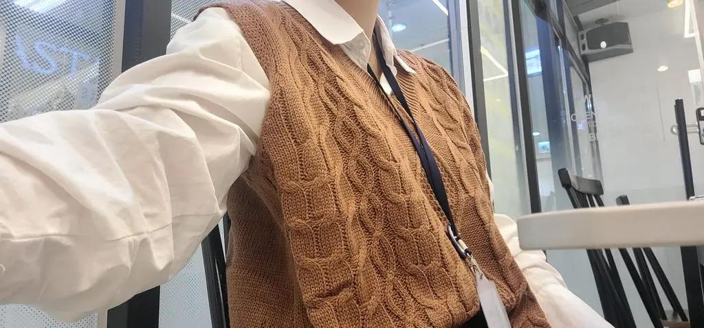 • 깔끔한 기본 셔츠입니다. 없으면 아쉽죠. 길이가 살짝 긴 듯하네요. 니트 조끼랑 같이 주문해서 입었어요.