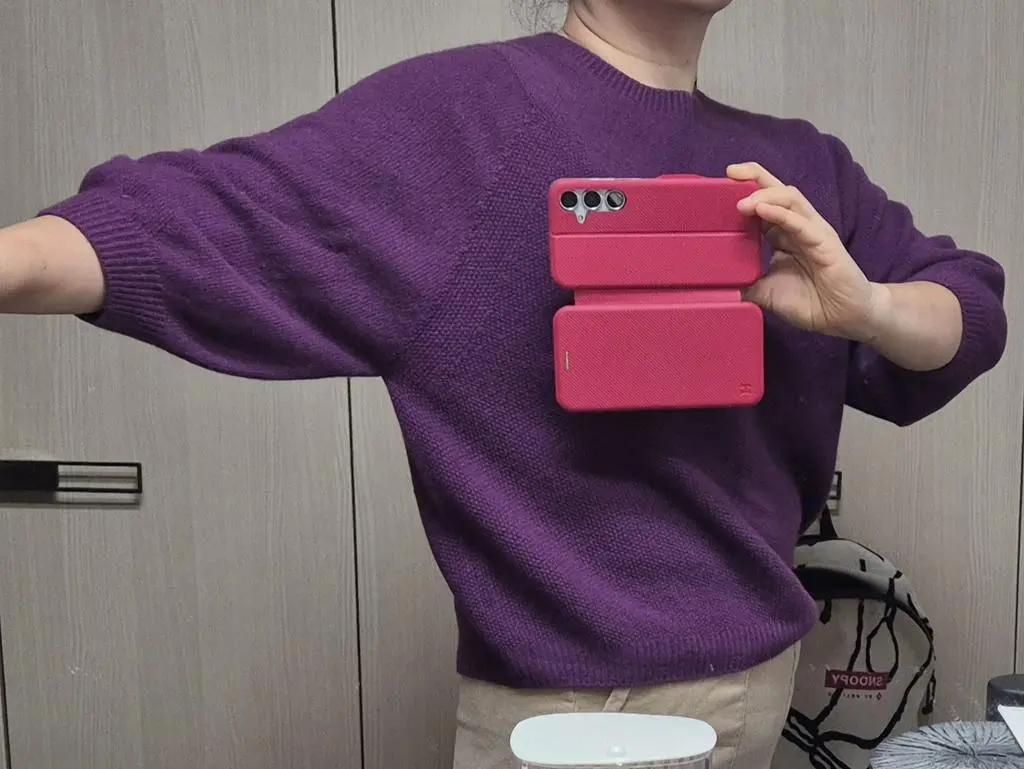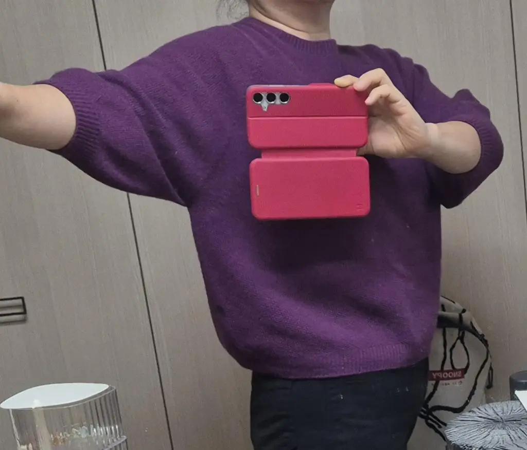 연핑크 구매 후 마음에 들어 진보라 추가구매 했습니다. 이음선 없는 홀가먼트라 역시 불편함 없네요. 소매길이는 조금 짧아요. 전체적으로 매우 여성스러운 디자인입니다. 77체형에도 여유있는 핏입니다.