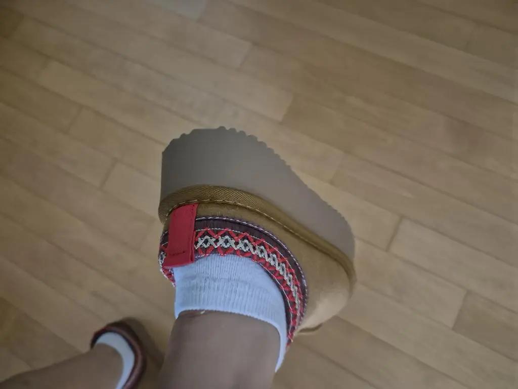 원래 230 신어서 똑같이 주문했는데 딱 맞아요 정사이즈로 나왔네요 신고 바깥활동했는데 발이 엄청 따뜻해요 신발도 깔끔 예뻐요 푹신한건 없는데 신고 다니기에는 괜찮아요 일상생활에는 문제가 없어요