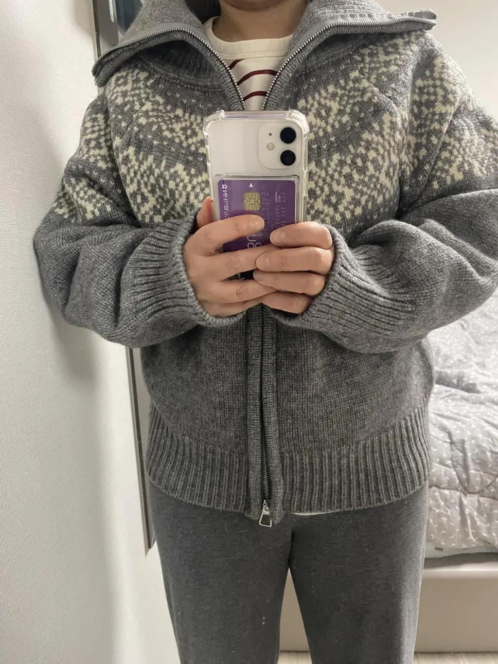 • 노르딕니트 가디건중 젤루 이뿐것 같아요 팔길이는 좀 길고 품은 넉넉하네요 주머니가 없어서 살짝 아쉽