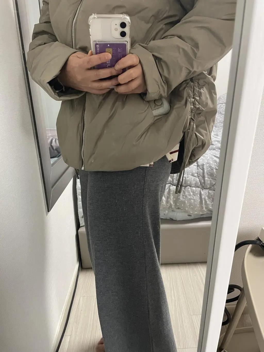 • 많이 두껍지 않아 부해보이지 않고 스트링이 포인트네요 색감도 너무 올드하지 않아 좋아요