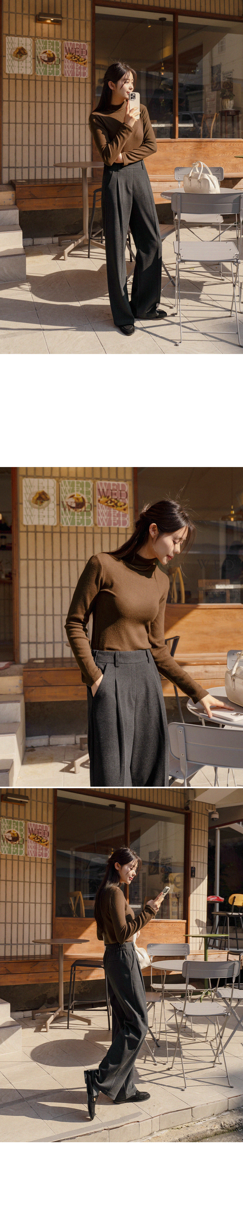 넥라인은 과하게 올라오지 않는 반목 디자인으로