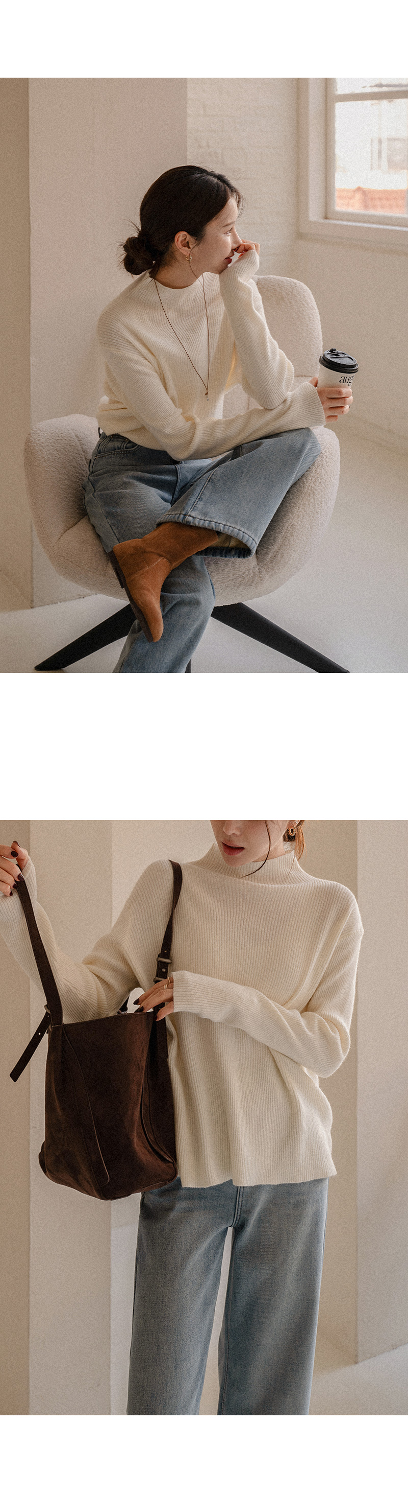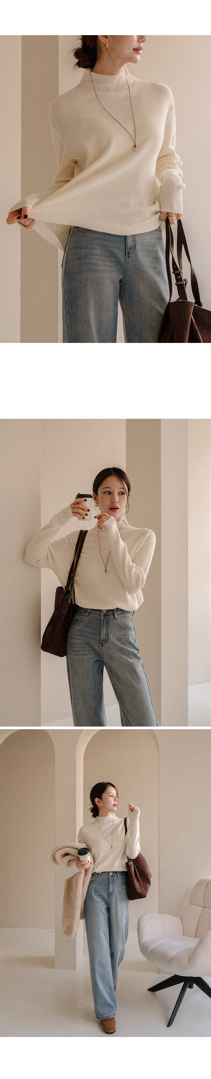 • Muffin Wool Corrugated Half turtleneck Knitwear Korea