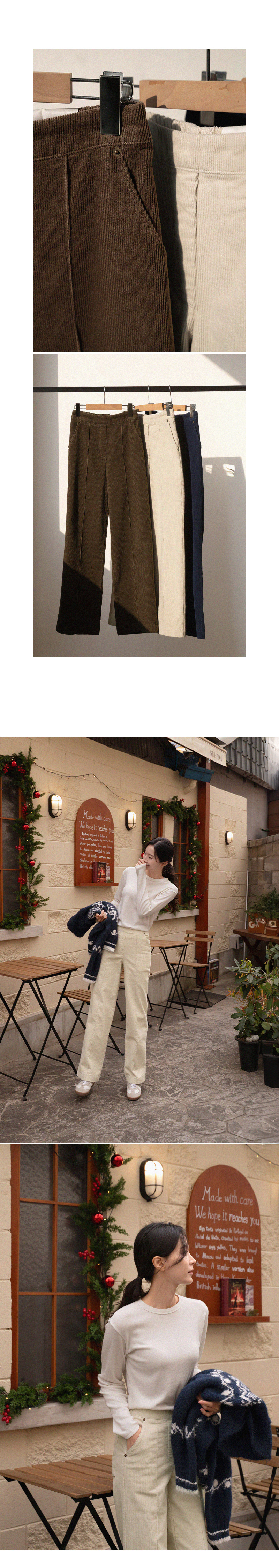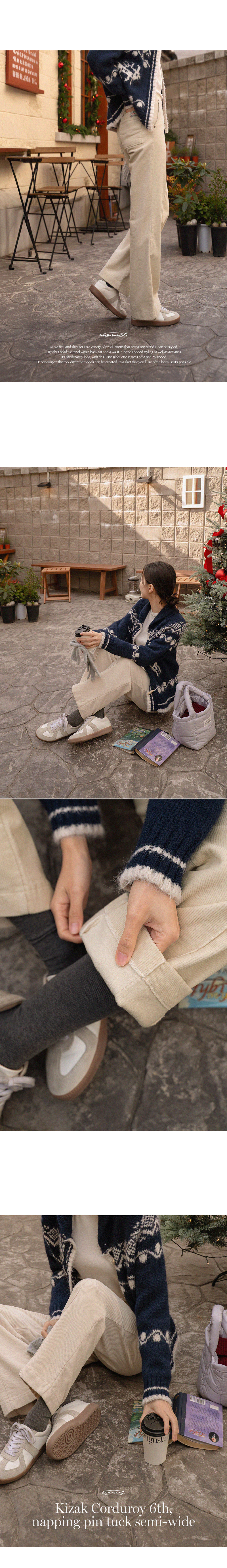 Perfect Corduroy Pants 6ver (fleece lined pintuck semi-wide)