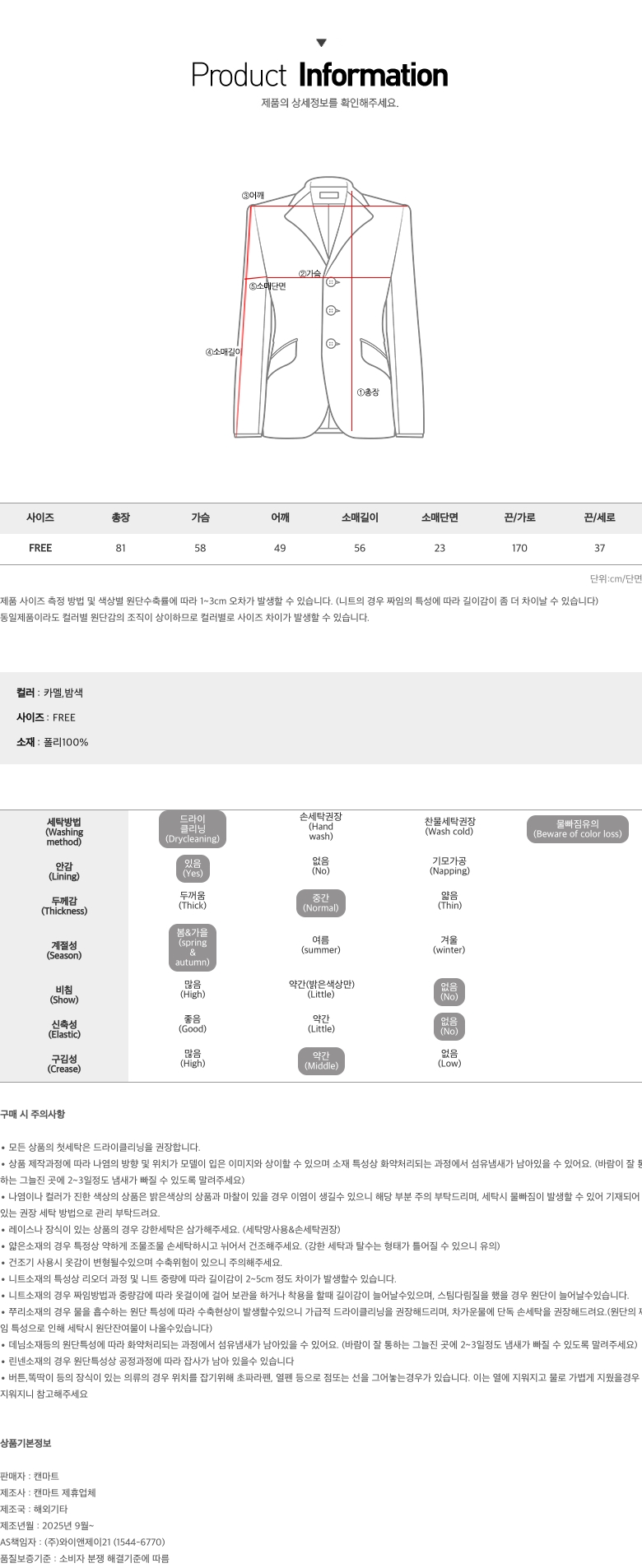 164cm 기준 허벅지 중간까지 오는 기장감으로