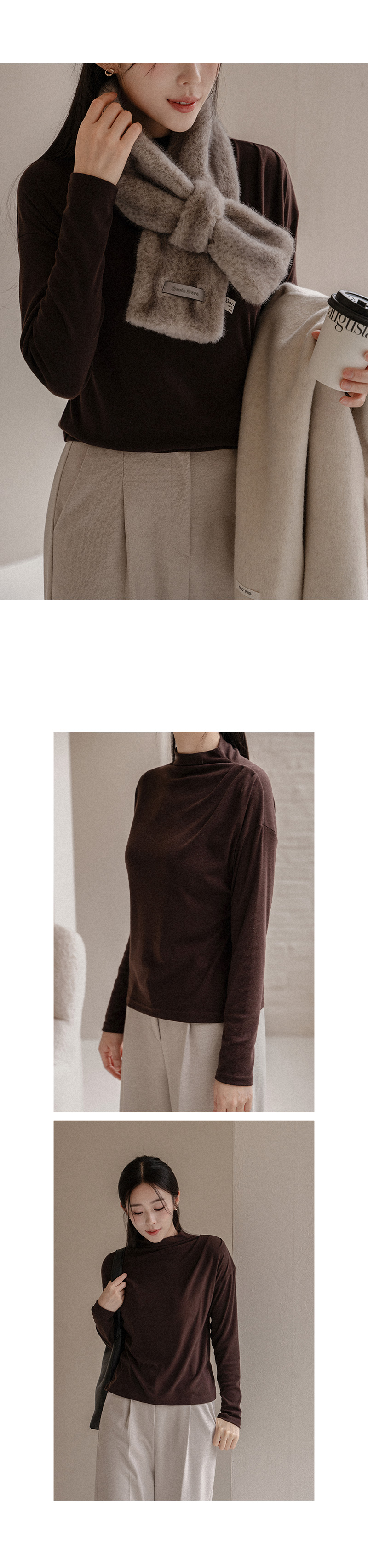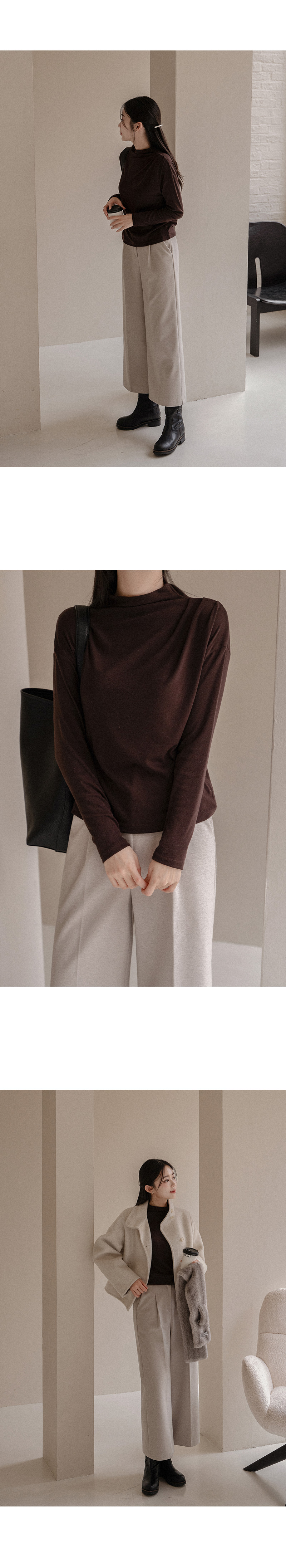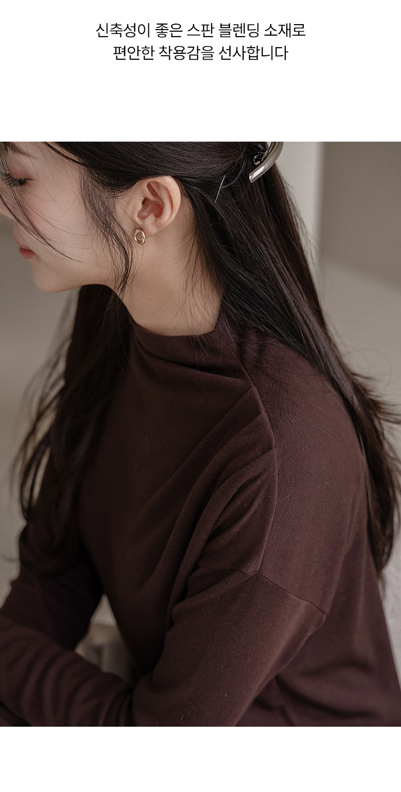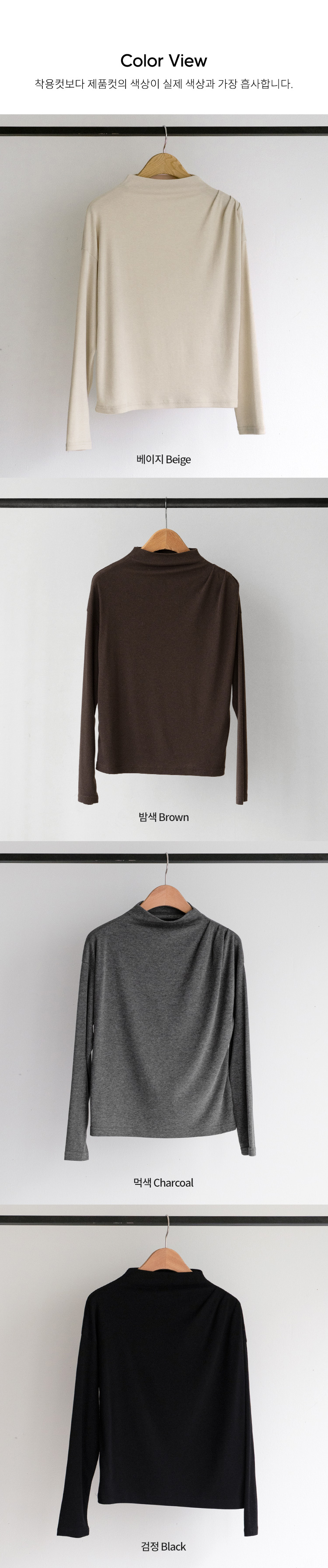 한번에 잡은 숄더 셔링 폴라 티셔츠입니다.