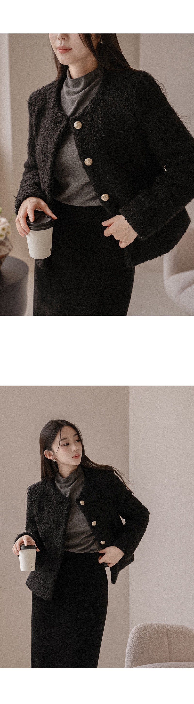 • Mono Button Wool Boucle Jacket Korea