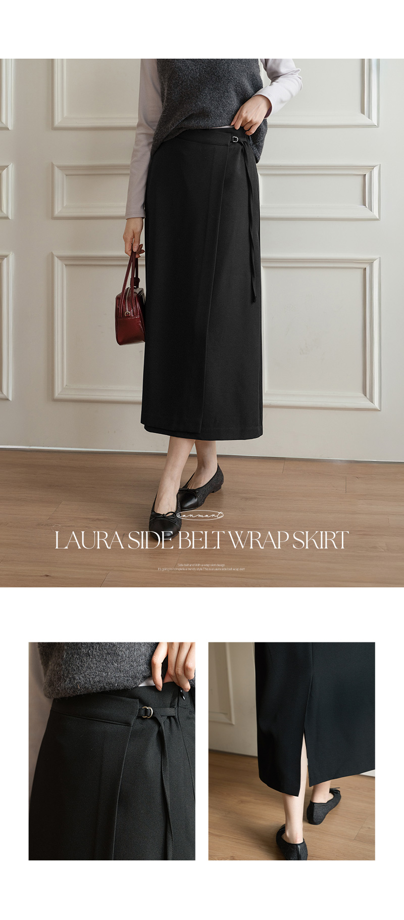 로라 사이드 벨트 랩 스커트
