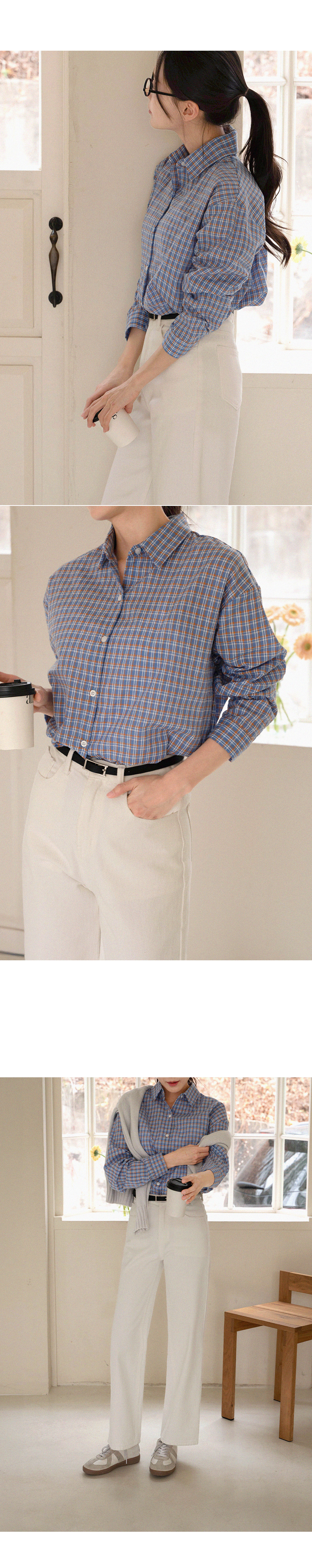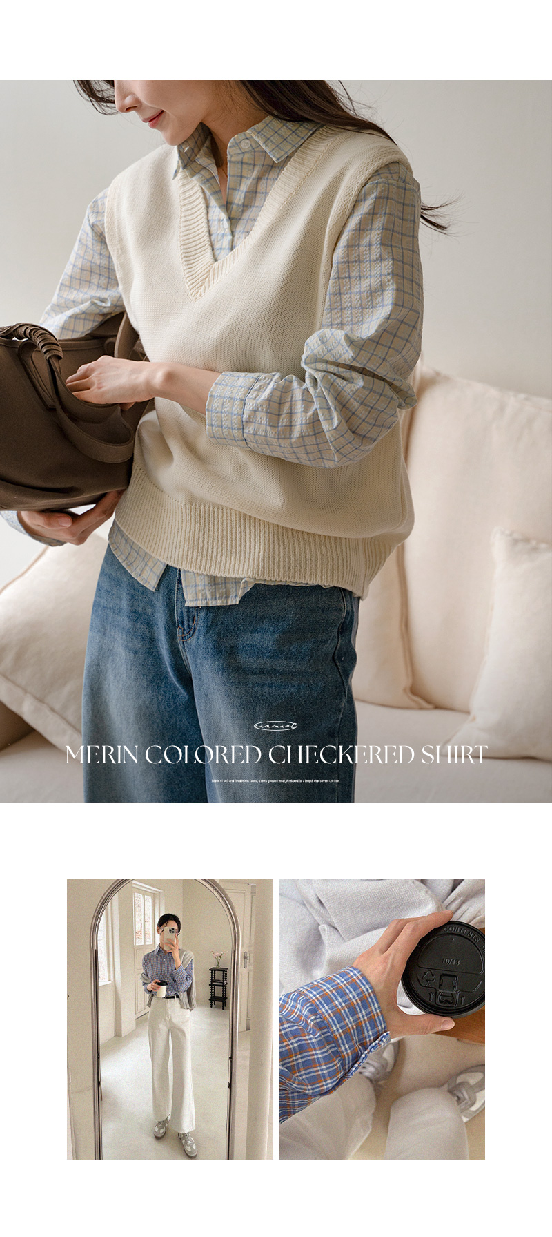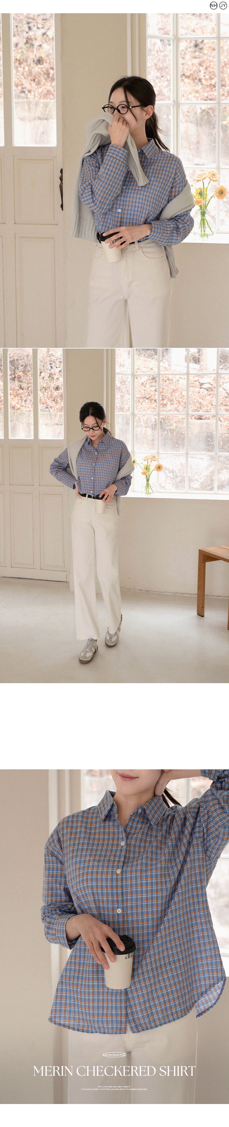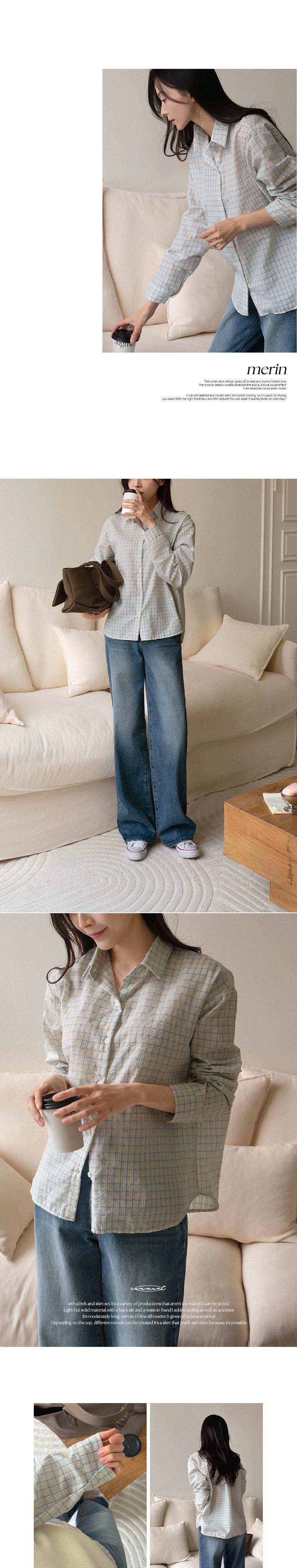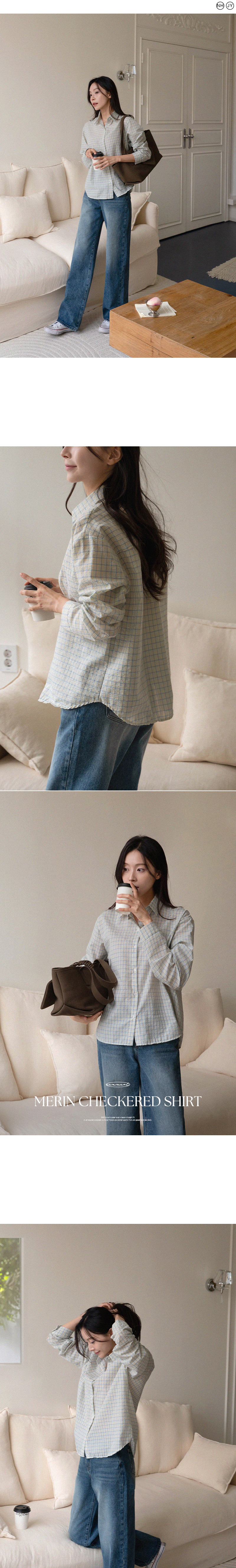 메린 배색 체크 셔츠입니다.