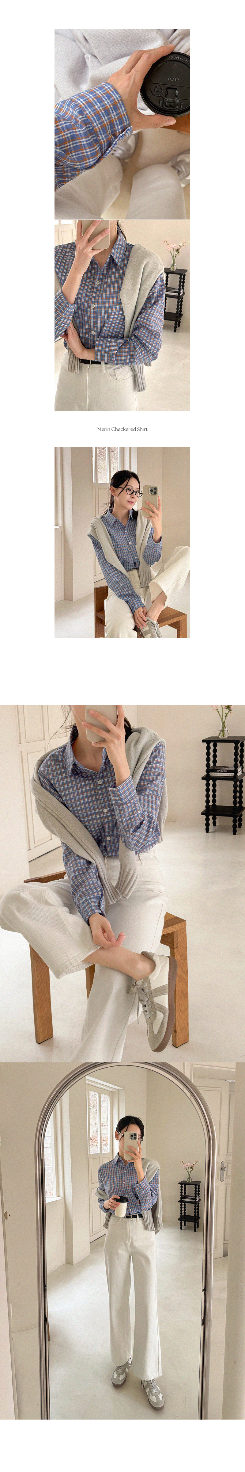 메린 배색 체크 셔츠