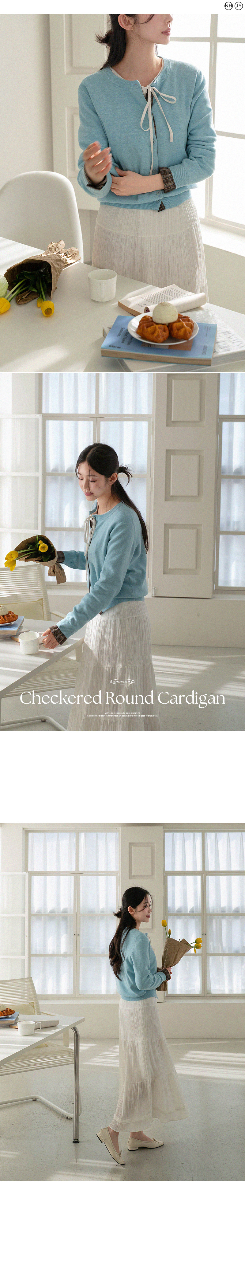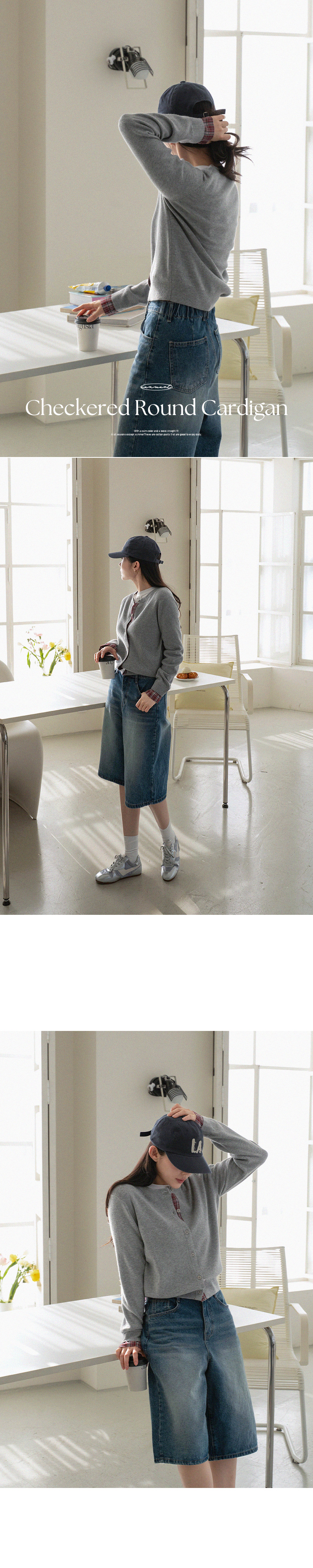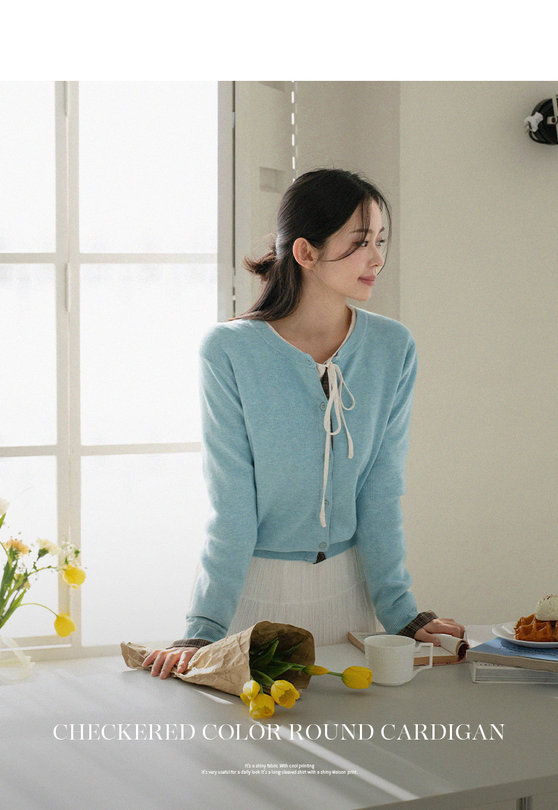 체크 배색 라운드 가디건