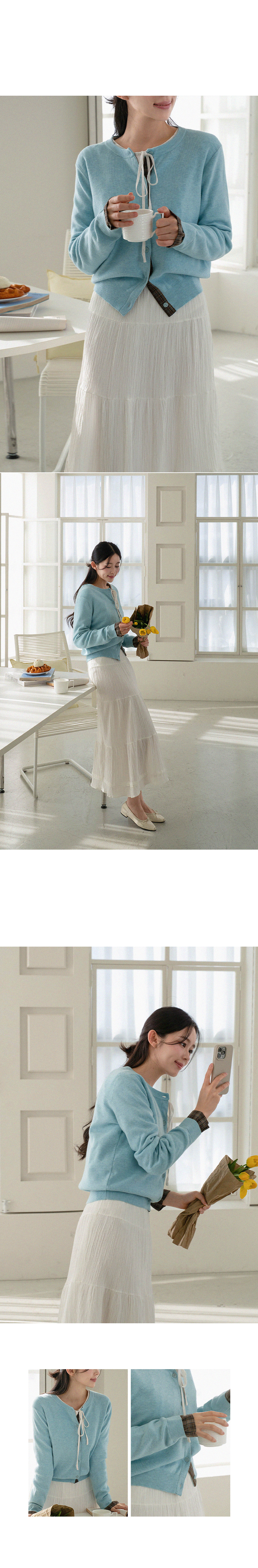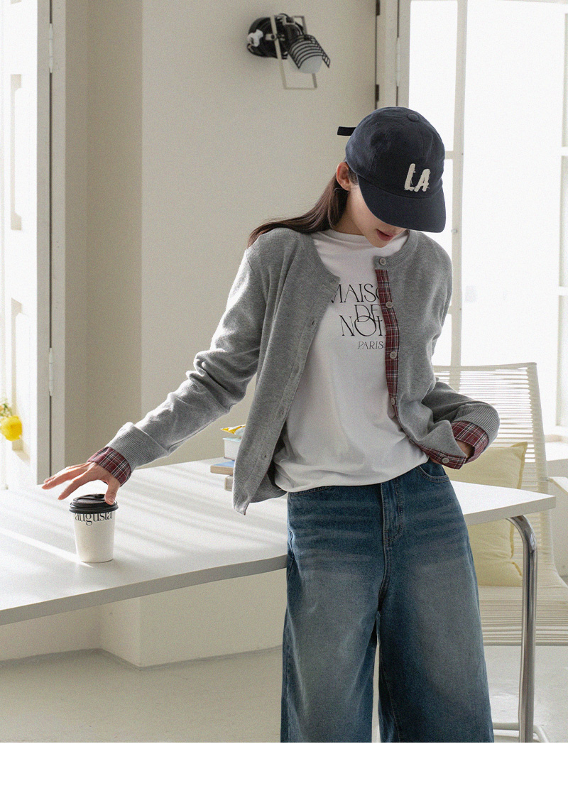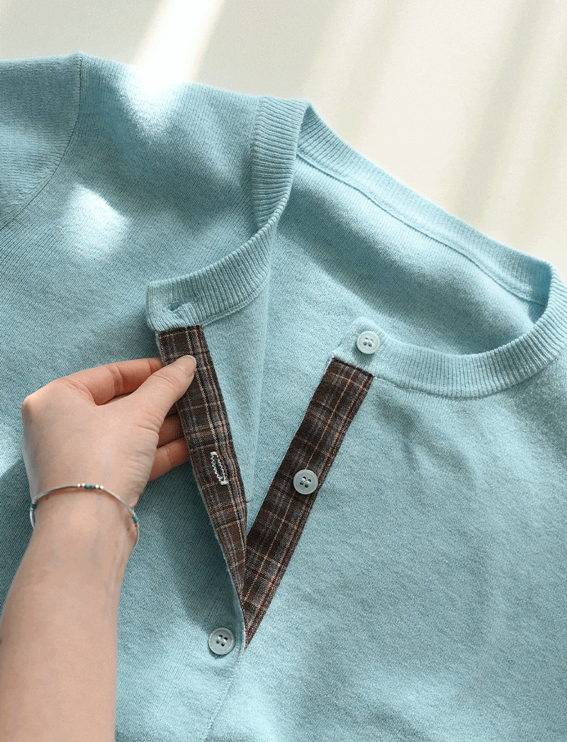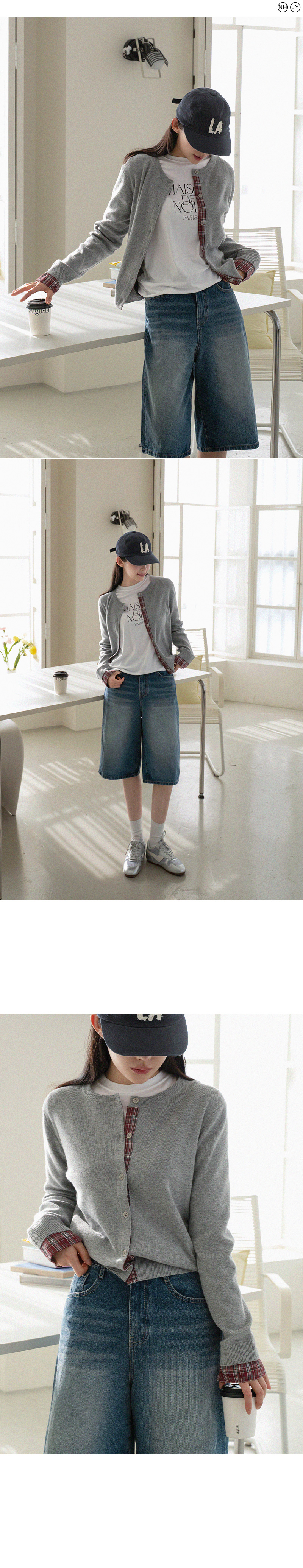 체크 배색 라운드 가디건