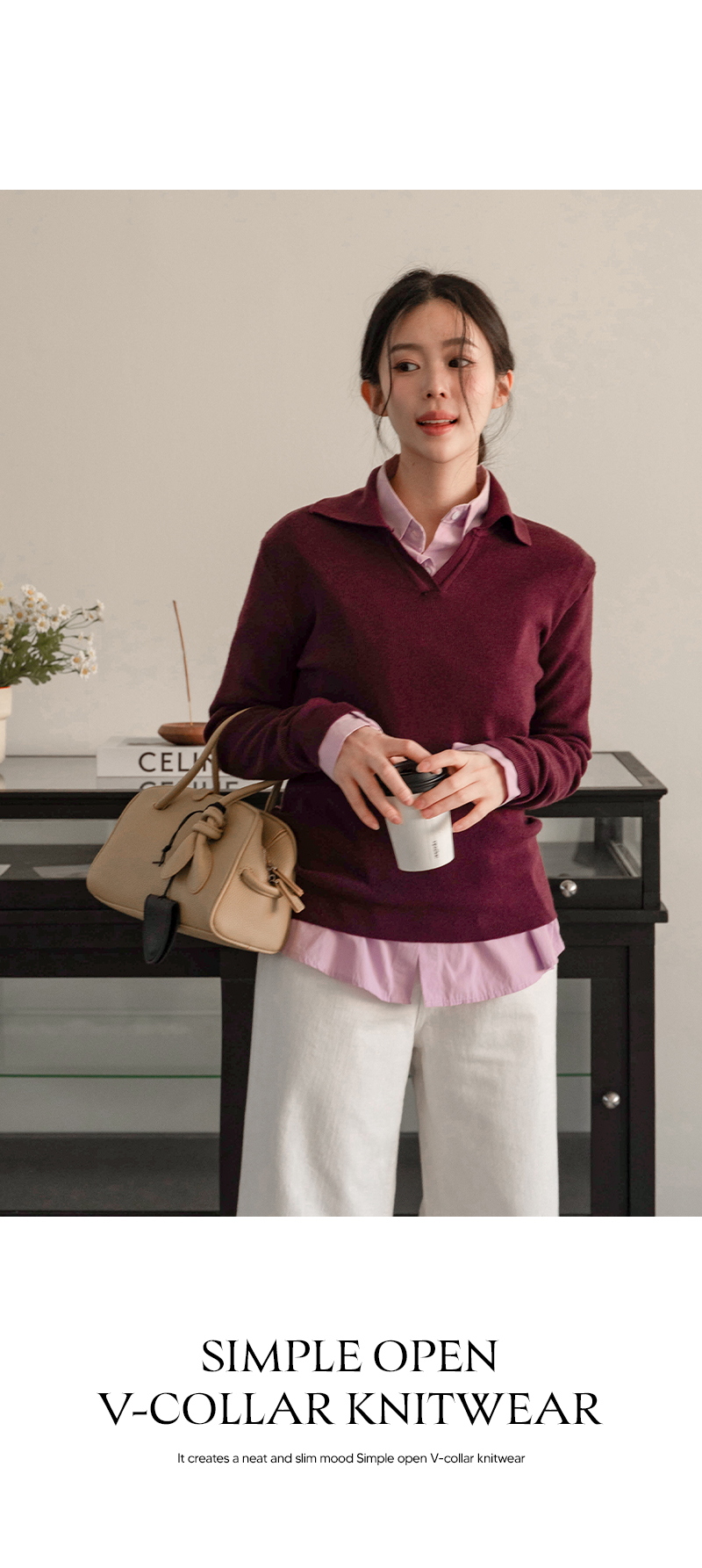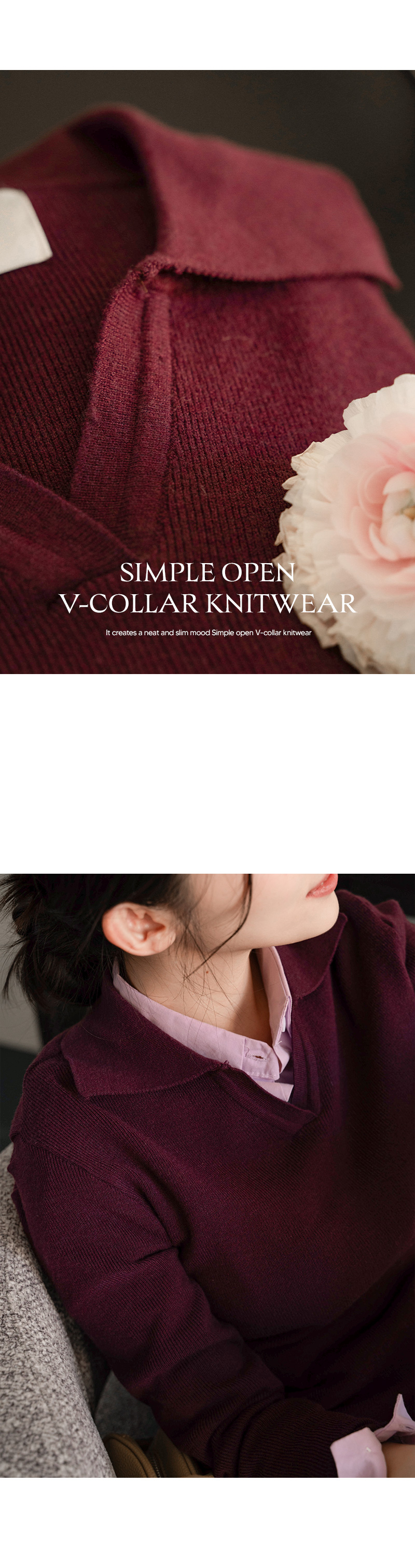 • SIMPLE OPEN V-COLLAR KNITWEAR