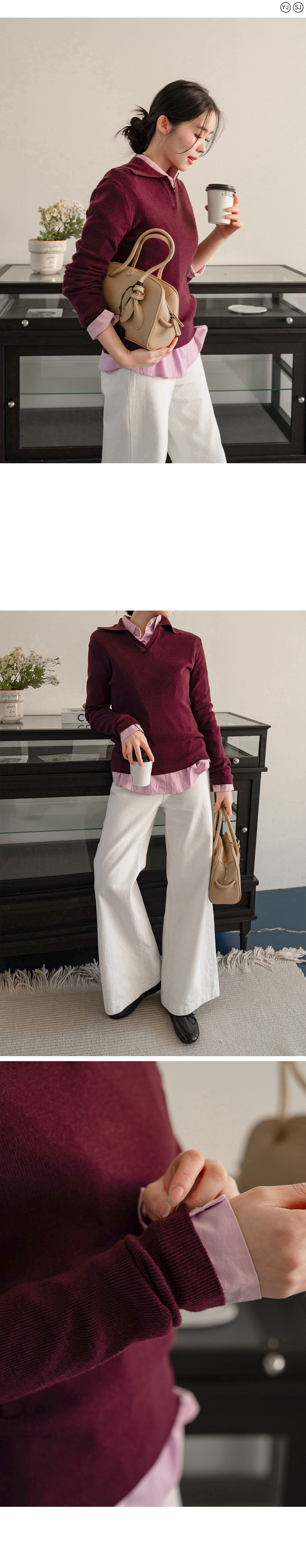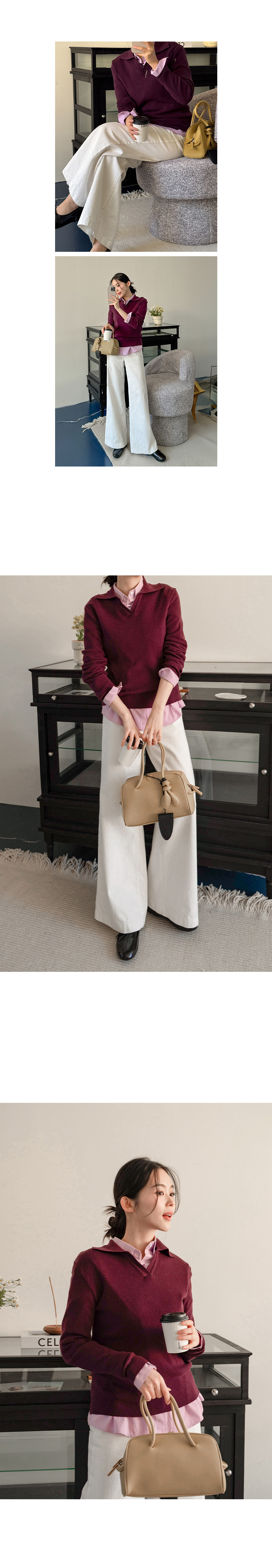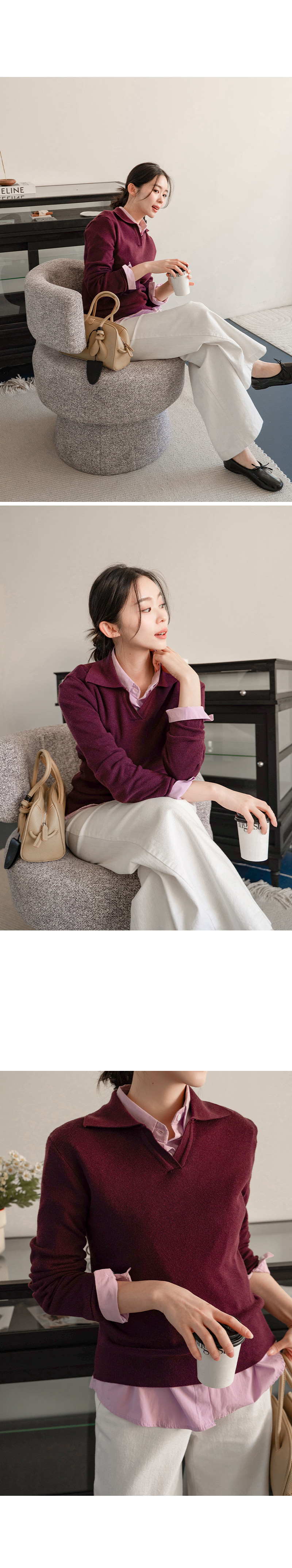 브이넥 카라 디자인으로 넥 라인 답답함 없이