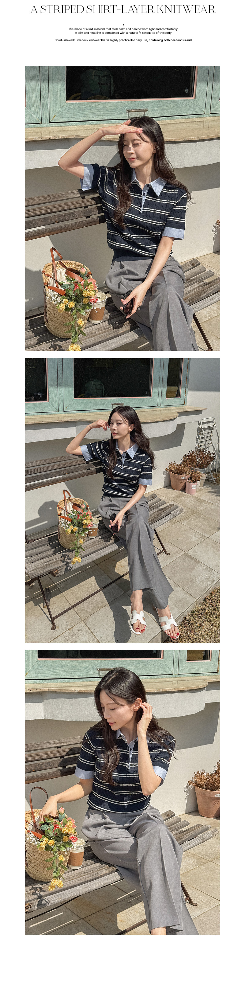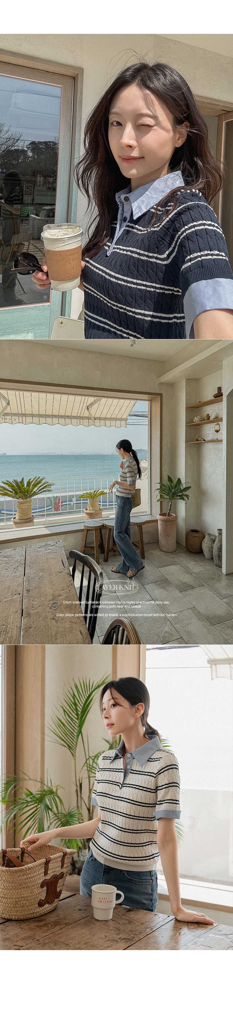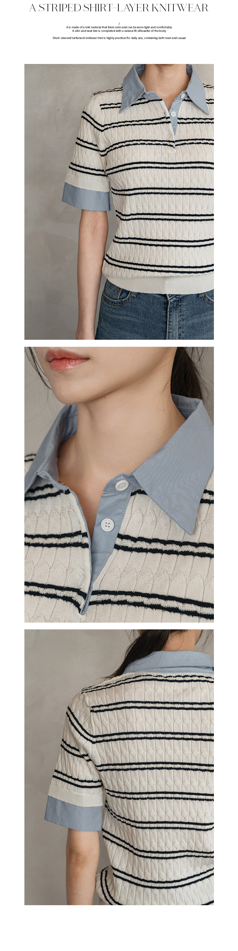 스트라이프 셔츠 레이어 니트