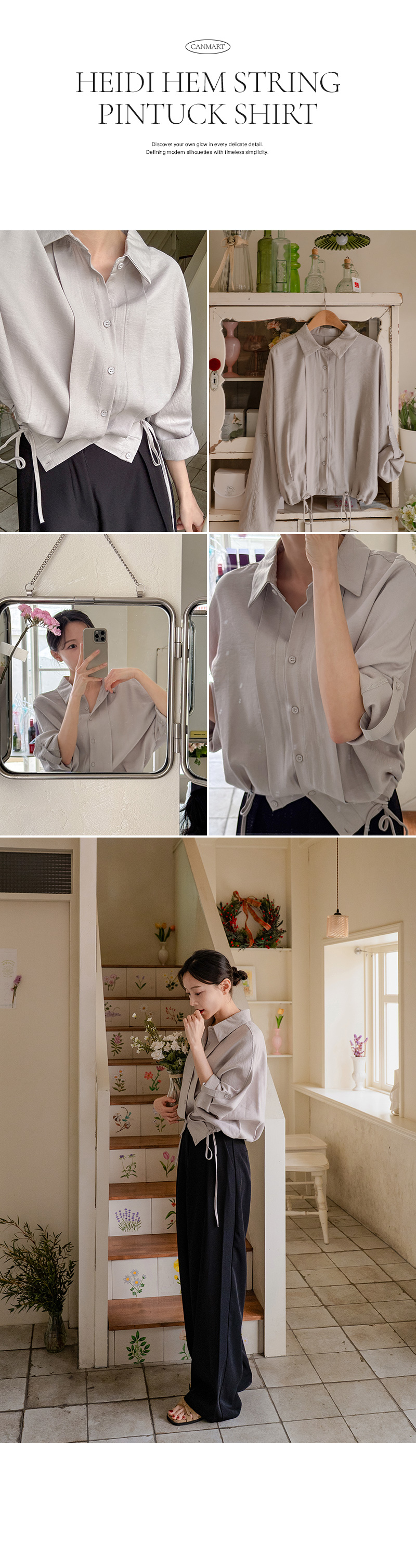 하이디 밑단 스트링 핀턱 셔츠입니다
