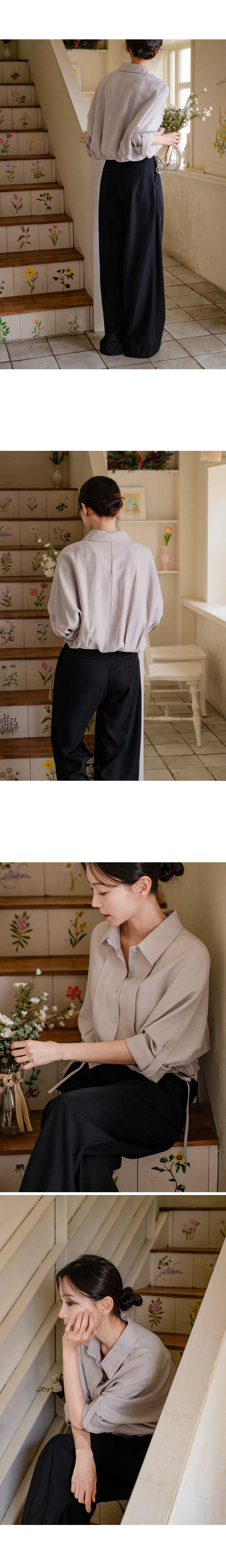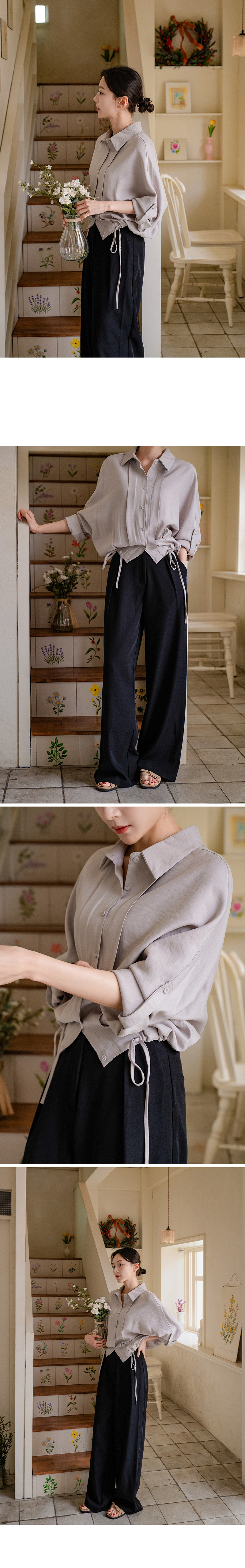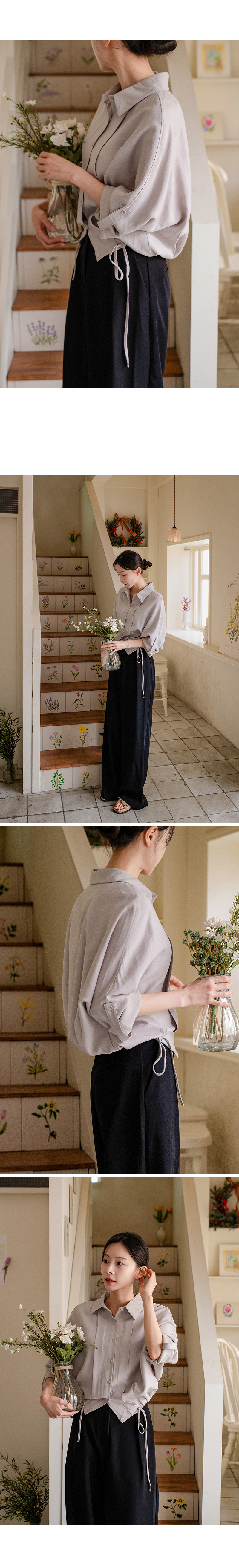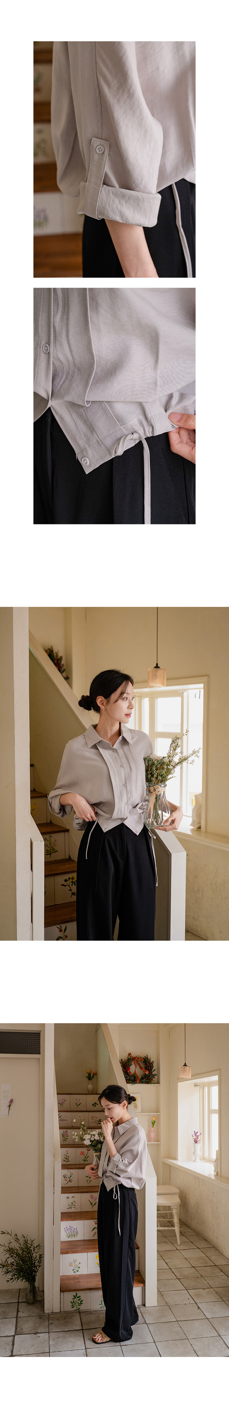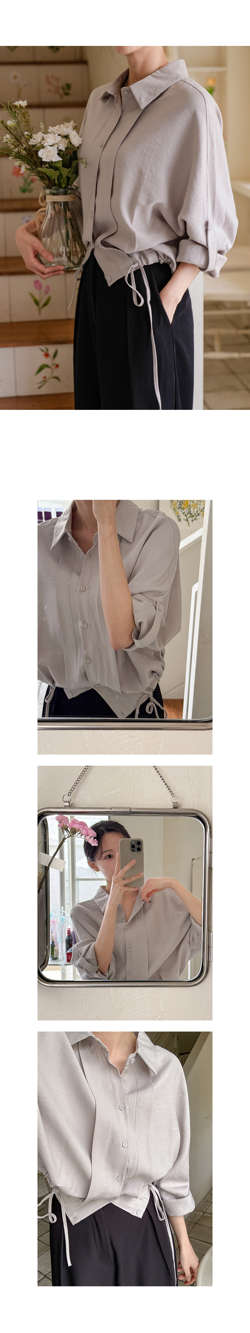 하이디 밑단 스트링 핀턱 셔츠