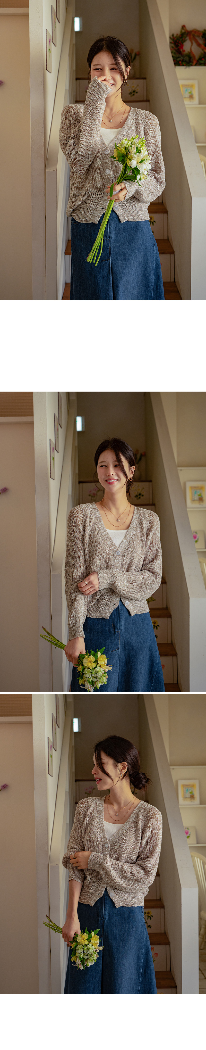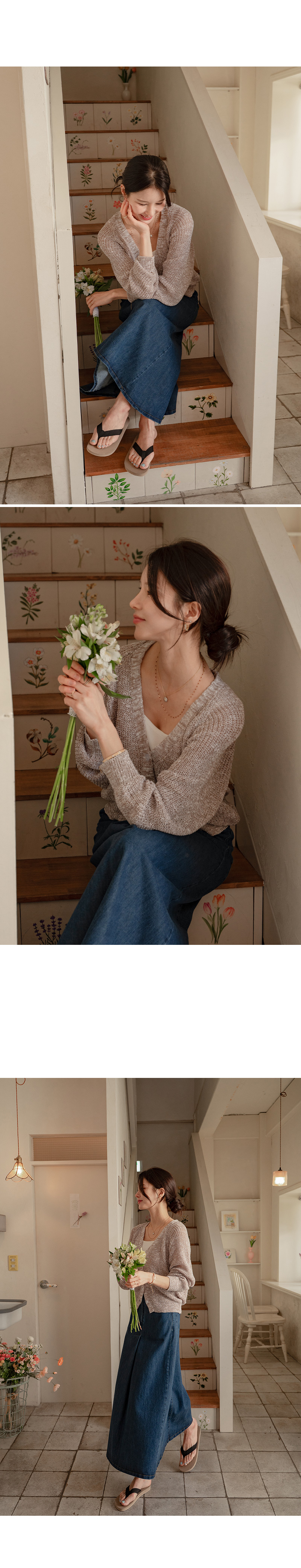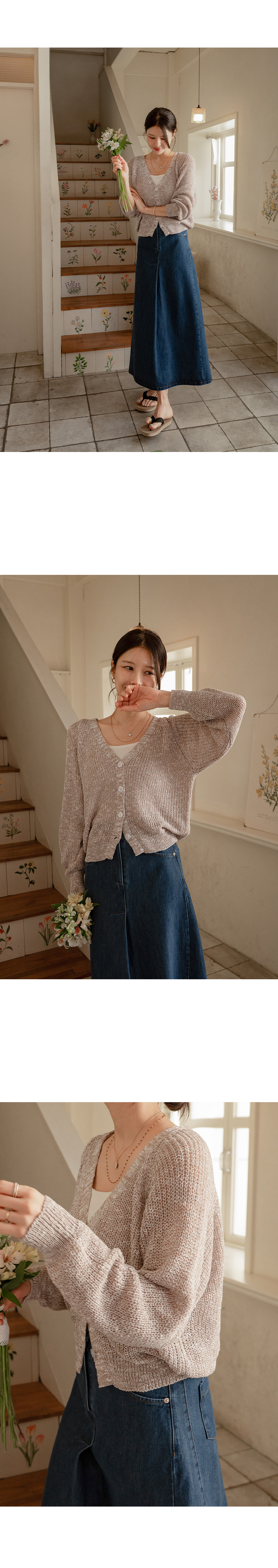 가볍고 여리한 분위기의 브이넥 가디건입니다.