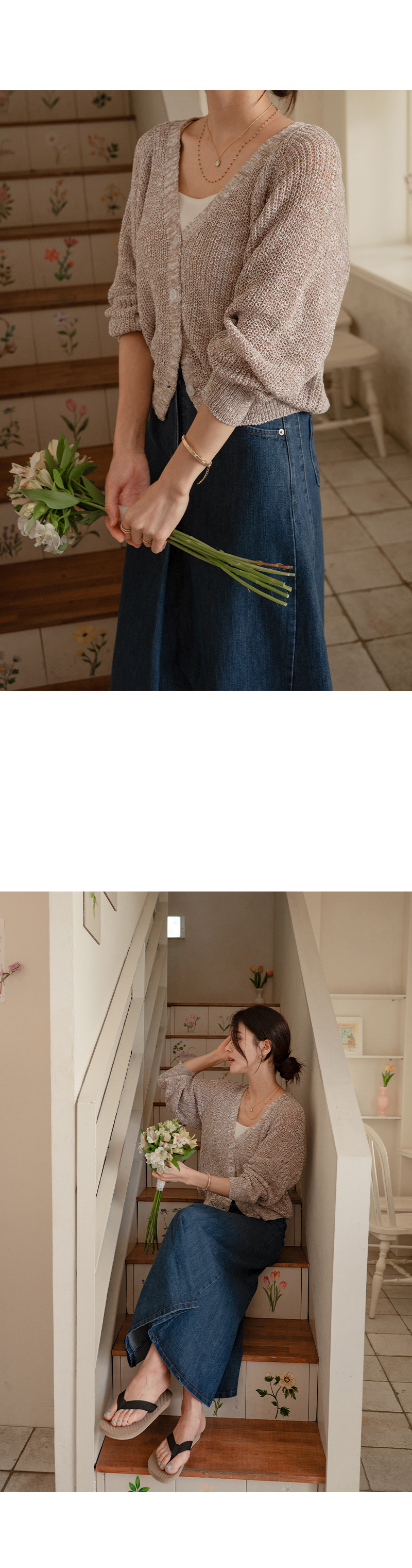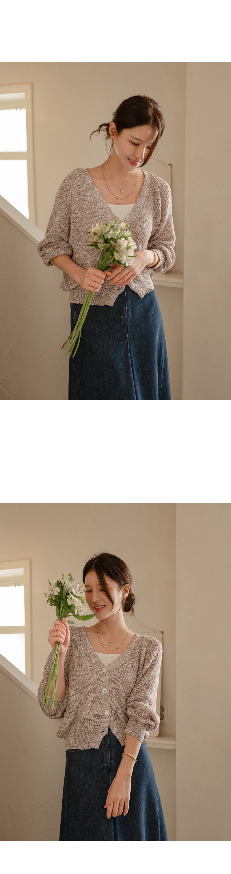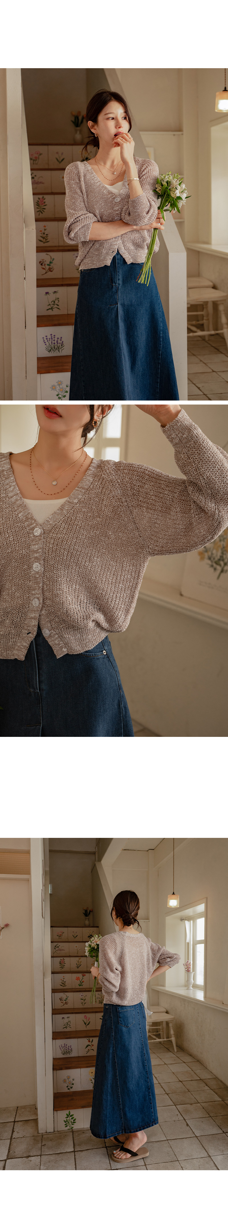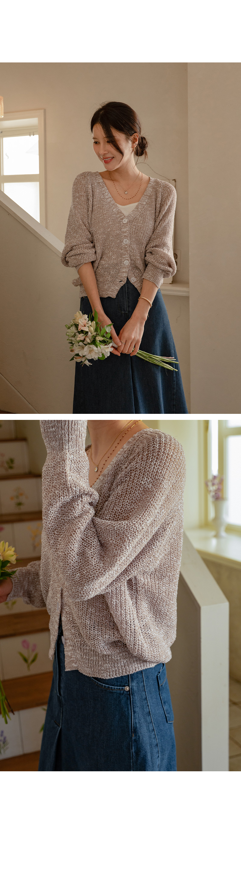 가볍고 여리한 분위기의 브이넥 가디건입니다.